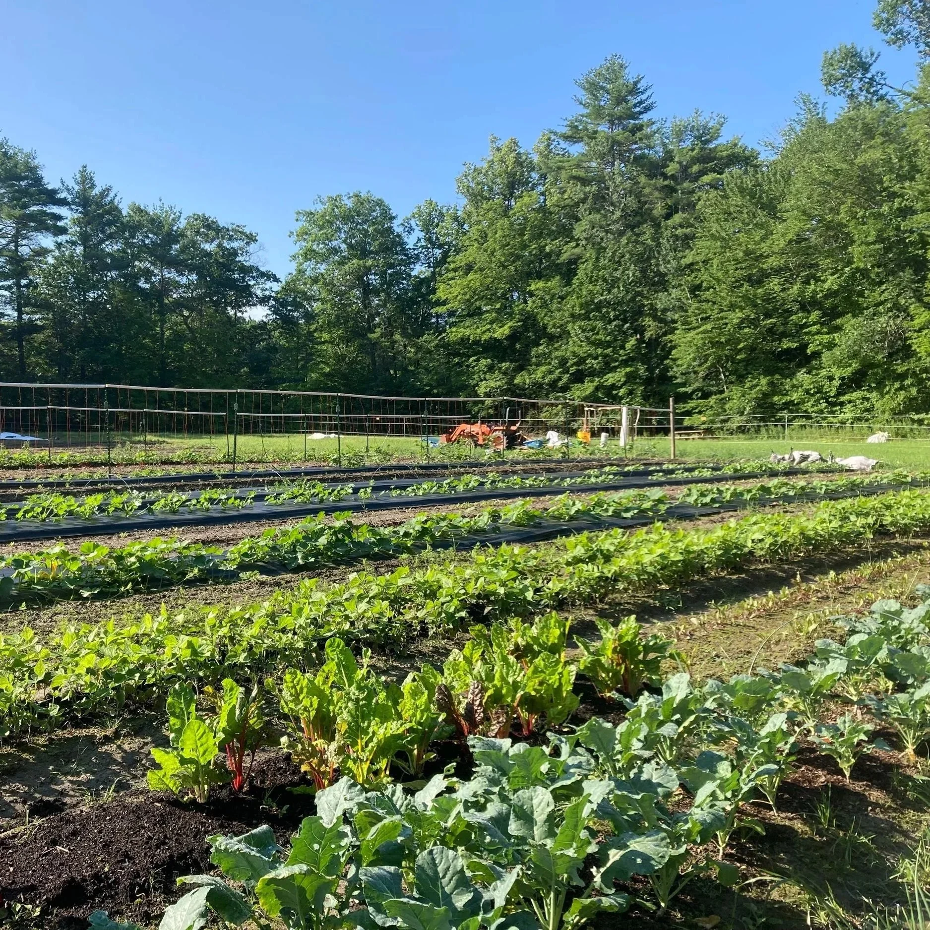 This 1.25-acre growing space lies in the rich soil along the Saco River. This was our first established growing area and is still our main production space. We aim for this to be a thriving agricultural ecosystem, bursting with a diversity of crops, flowers, insects, microbes, fungi, and learning opportunities!